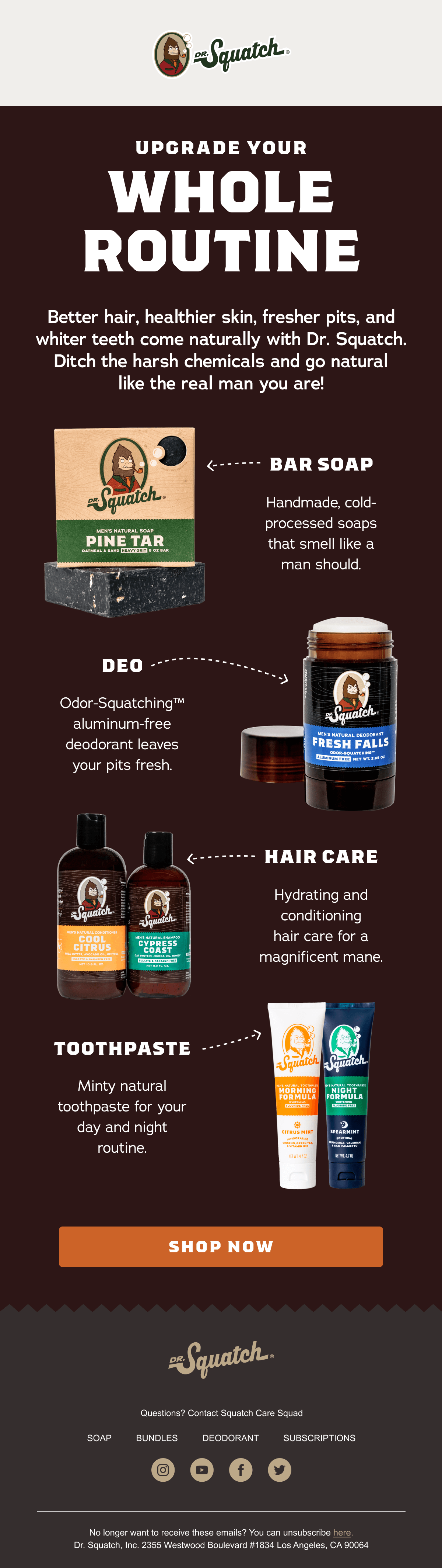 A product catalog (for high-SKU brands) or product spotlight email (for low-SKU brands) which can include: